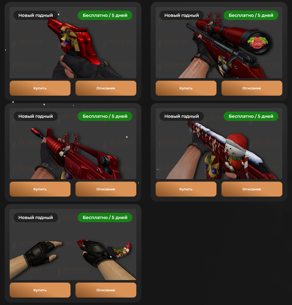 Бесплатно на 20 дней новогодние скины всем, ищите на сайте и забирайте.